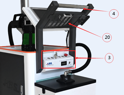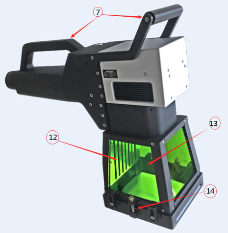 (7) Рукоятка сканера (для портативной/ручной маркировки): когда оператор использует эту машину в качестве портативного устройства, у него/нее есть две ручки, позволяющие удерживать сканер для продолжения процесса маркировки.